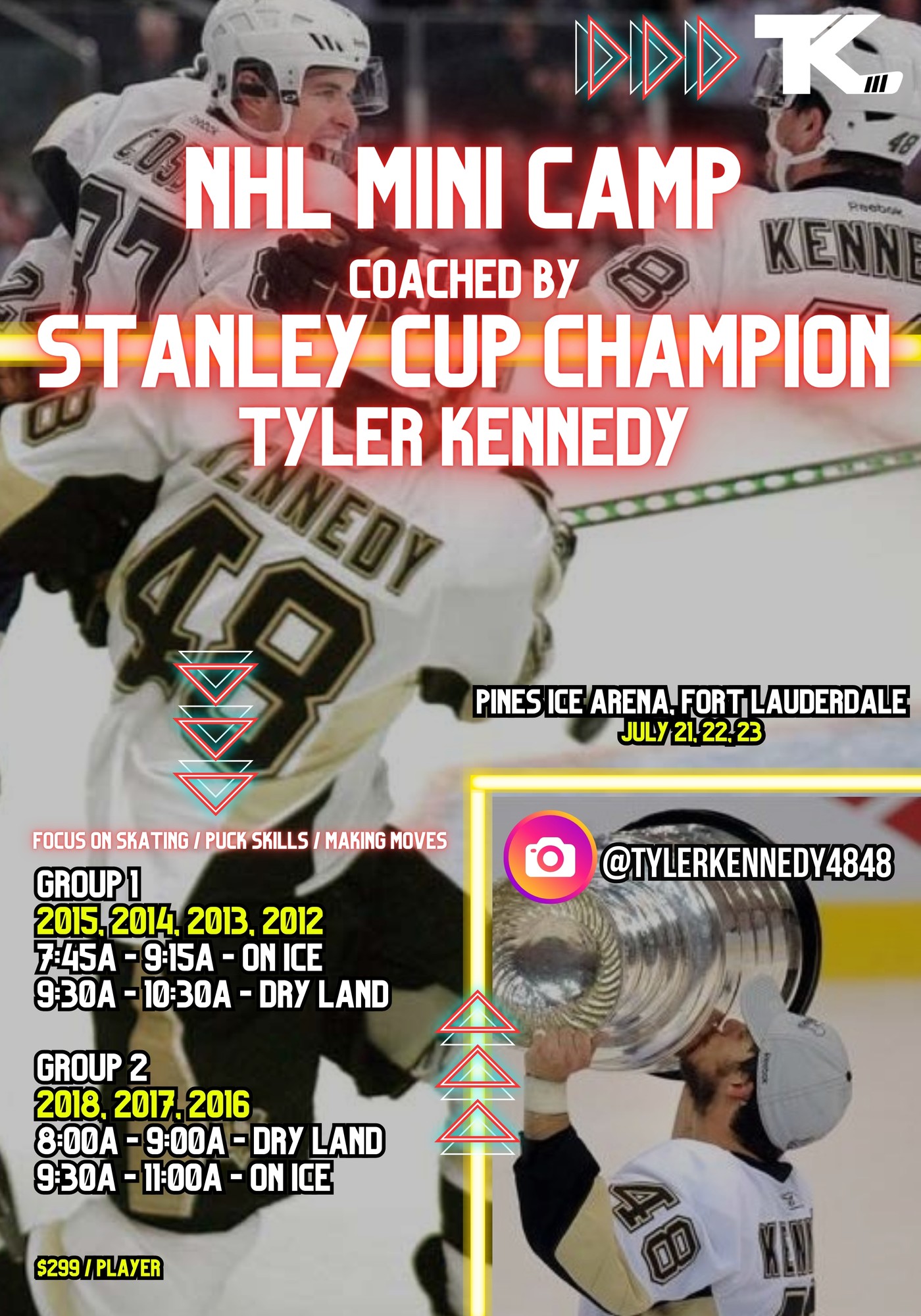 Stanley Cup Champion Tyler Kennedy and Vice Hockey are teaming up to offer an elite level training experience at Pines Ice Arena this summer! Sign up now, limited spots available!